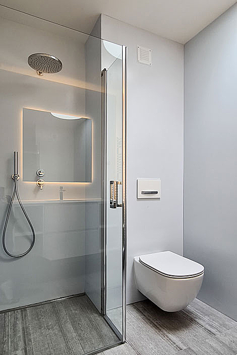 This flat has a very nice lighting-there are several skylights on the ceiling. Some in the corridor and some in the bathrooms. This makes all the spaces very fresh and pleasant.